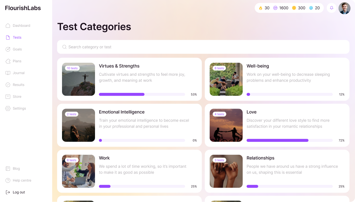 FlourishLabs believes in your potential and makes growth fun—no more disempowering diagnoses and inability to move from insight to action. With FlourishLabs, you will know what needs work, how to work on it and that you can trust the results.